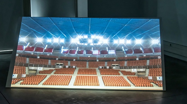 我们用工厂的主题去表达工人阶层的消亡,至少在象征性层面上。在一个去工业化和大众阶级兴起的欧洲,如重组后的一系列图纸所示,我们建议对已经没有工人的空置的工业遗产进行文化占用。在飞碟形体育馆这件视频装置中,对工人阶级的消亡有着更清晰地表达:我们会听到好战分子莫里斯 · 索雷斯乐观的演讲,不合时宜地鼓舞着缺席的人群以及那些空置并废弃已久的座位。