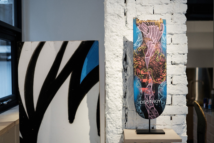 现场除了艺术家最新的绘画创作之外,还包括了众多极具艺术特色的滑板与墙画,至于艺术家也亲自在现场利用喷漆创作了众多涂鸦 T-Shirt。更多现场回顾不妨查看以上图片,感兴趣的朋友也可以亲自前往 SUNSET 感受艺术家的独特魅力。