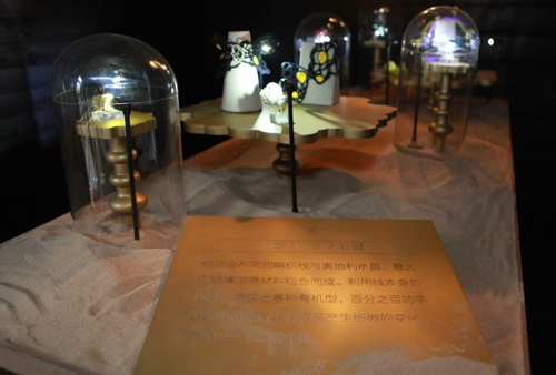 秀场设计简约大气,而地上却铺满黄沙,这种看似不搭调的组合却很好的用现代语言重新诠释了古老的元素。伴随音乐声,模特们缓缓而出,仿佛来自神秘古城,向人们诉说这场盛大的寓言。镁光灯下,织锦红与琉璃金在眼睑飞扬,蓝与橙在光影变幻中散发迷人的光。这无疑是一场精彩绝伦的彩妆秀,美的让人神伤。当表演结束模特返场谢幕时,现场响起雷鸣般的掌声。