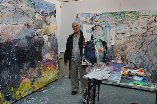 采访当日下午3点多,我们随着特劳迪教授的助手李秦鹏来到广州美术学院特劳迪教授的工作室,见到了教授一家三口。81岁的亚历桑德罗•特劳蒂(Alessandro Trotti)教授是意大利当代著名画家,当代表现主义代表人物,罗马国立美术学院的资深教授,近几年每年也会到广州美术学院的高修班进行教学。他的创作题材丰富,画风多样,格调高雅,带着浓郁的地中海风情。他这次来广州会逗留一个季度,直到5月份。