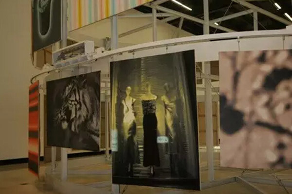 这次颜磊为红砖美术馆构思制作的新展览,由几个部份构成,包含绘画、装置、声音等不同媒介,简单地以“利悟利”的名称作为标题。观众一进中央展厅首先看到的是一件大型装置《利悟利》(2015),一架双层结构的汽车生产线机器:运转中的旋转带上悬挂着颜磊在利悟利公司成立初期所做的实验性油画作品,而喷上工业漆的汽车部件却被当成画一般挂在美术馆的墙上!