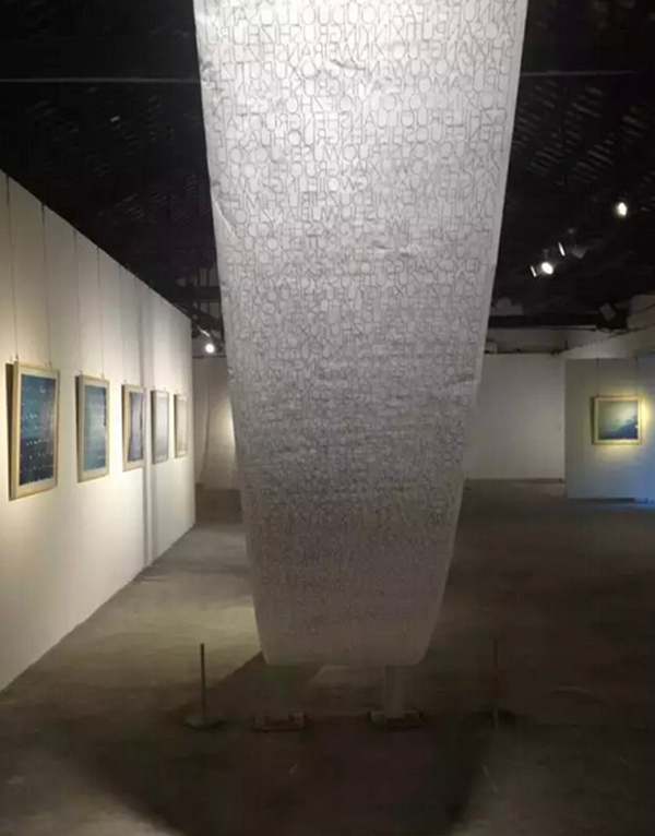 在同一贯通的空间内,两位年轻艺术家围绕着“书法”这一两千多年的艺术主题,展开对话和碰撞。对映、冲突、相近或相反,迸发出惊人的视觉冲击。在展览中能发现“书法”的形式、书写的仪式、笔墨的元素,同时又恍惚有“绘画”的图形、构成的规矩。他们各自在不同的专业方向上研究着如何将传统古老的主题用最鲜活、最年轻的姿态表达出来,执着又直接地挥洒在土地上,接受盛夏烈日的烤燃。