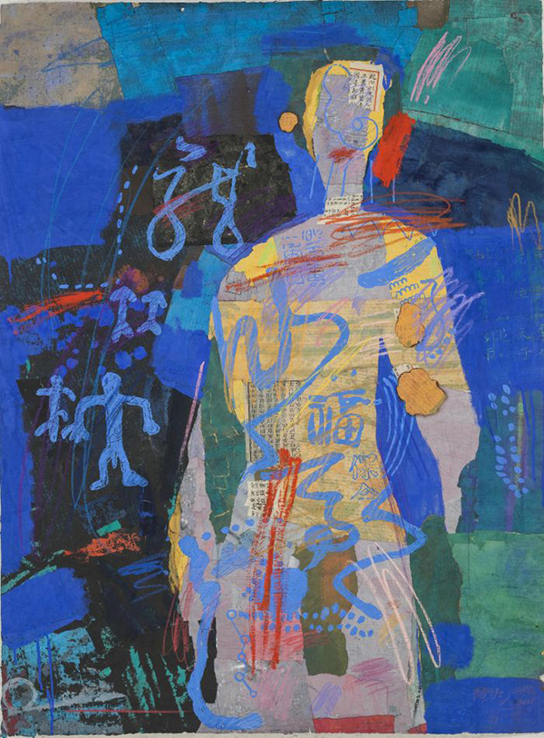 《茶和一点点咖啡》,2001,咖啡、茶、色、墨、宣纸拼贴,178×48×100px