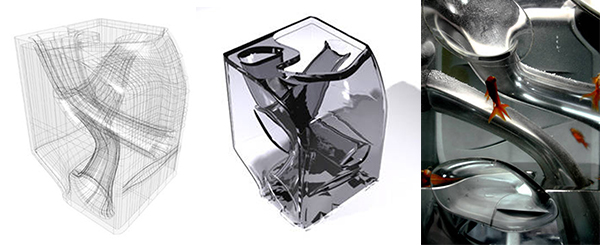 建筑师马岩松用录像机连续几天拍摄鱼儿游动的情形,然后绘图记录所有鱼儿到过的方鱼缸中的地方,发现有些地方鱼儿从来不去,可见方形鱼缸其实是设计者从容易制作出发设计,而不是从鱼儿的角度来进行设计,其实现实生活中这种不考虑用户而设计的例子会有很多。马岩松于是将方鱼缸重新设计,减去了那些鱼儿不去的空间。