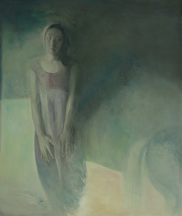 而在色彩的表现上,周志奋也是有自己的追求。他油画笔下的色彩如同光影一样在画面上神出鬼没,这种色彩所起的作用更接近国画中的“明暗”,它掌控了整个画面的气氛,也展示色彩本身独立的美感。他的《这不是呐喊》中,我依稀能感受到,不同于了西方人眼中油画色彩的“真实性”印象,而最终成就了这幅作品。我想,这样的色彩运用,直接关系到空间的存在,将我们的视觉体验引向到他所营造的空间中,而非空间中的简单形式,一个在望远镜与显微镜之外的表象世界。当然,也只有在这样的表象世界里,有生命的形式才有可能存在。