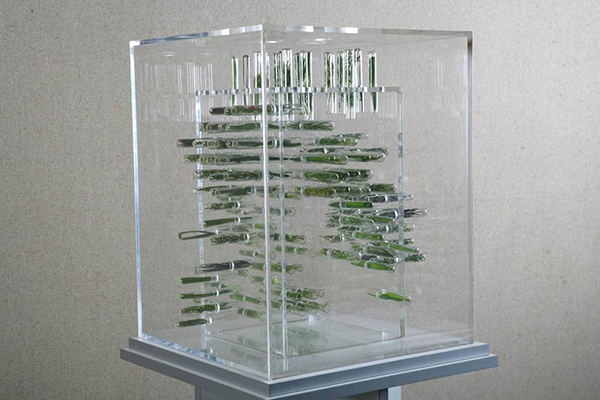 《以形而上的方式诞生Ⅲ NO.5》材料:试管,植物,玻璃钢着色 古典桌椅