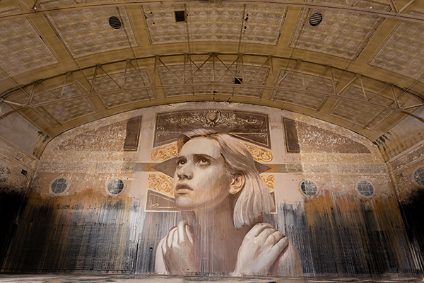 在即将被拆毁的墨尔本star lyric theatre剧院里,rone展示了来自于他的个展“empty”的系列图片,探索着美丽和衰败之间的关系。“我对被遗忘的地方有着特殊的情节。”艺术家说,“我喜欢在废弃、破旧和被遗忘的角落看到美丽的元素,我觉得这可以叫做在不经意的地方发现美。”
