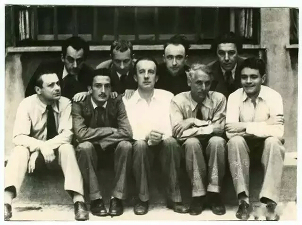 老年的迪奥先生与达利等艺术家朋友聚会,超现实主义先驱让·考克多,著名作曲大师埃里克·萨蒂,西班牙画家萨尔瓦多·达利,都曾迪奥最亲密的小伙伴。