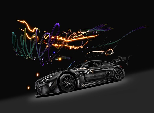 这样的主题通过三个不同的元素得以展现:一个名为《无人驾驶》的视频,由一个时间旅行的精神实践者演绎;充满彩色光线粒子的增强现实,通过一个专用的app可以看到;以及一辆碳黑色的BMW M6 GT3跑车。曹斐使用非反光的整体黑色外壳,让汽车能够在数字化世界里驰骋。