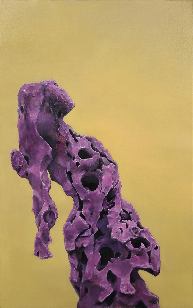 在导师车健全教授的谆谆教导下,期间自己也阅读了一些艺术理论。慢慢地苦于在艺术中的追求不断升级,内心失亲之痛渐渐隐埋,有所顿悟也变得平静。开始喜欢罗斯科,培根等艺术大家。于是,在2012年初遇见了石头-太湖石。对于出生在粤东的乡镇的我自然不是对太湖石有着太深的中华文化情怀。但它是我的。不规则扭曲、坚硬、满腹岁月、丑陋之美、无彩,草根逆袭,而其中最为重要的是我在太湖石中看到了死亡与永恒。石头中大大小小的“黑洞”以及自身酷似了骷颅头。“黑洞”或者说是“虫洞”似乎是我想要的改变历史的通道,是死亡与永恒的所在。有点庄周梦蝶的味道。2013年至今先后创作作品《石絮》系列、毕业创作《洞见》、《殁*恒》系列。