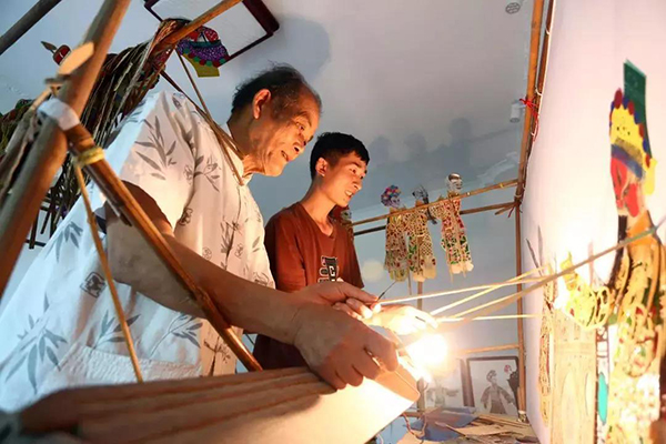 在“幕布跳跃”纸影戏剧里,纸偶在幕布上仿佛拥有了生命,活灵活现,呼之欲出……