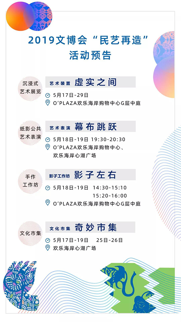 从2019年5月17日至5月29日,欢乐海岸通过艺术展览、公共表演、体验工作坊、奇妙市集等活动形式,为市民带来一场现代与传统结合的民艺之旅。