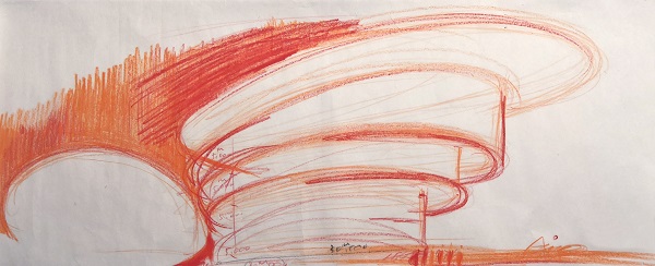 美术馆整体呈四层非同心圆建筑,每一层的圆心都在不同的位置,因此建筑的支柱角度和位置都有所不同;而且内壁采用一次性浇筑成型的清水混凝土饰面,不做二次修饰,只在表面涂刷一层清水混凝土保护剂,对工艺要求极高。