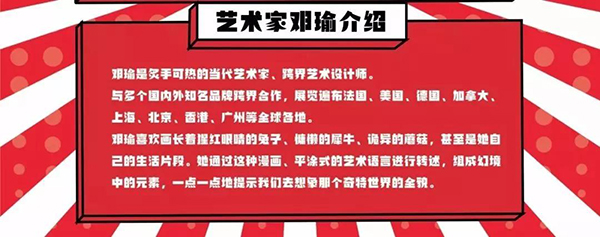 艺术家以全新角度去观察世界,探讨当我们习以为常的小与大的观念被彻底颠倒了之后,发现人与物都有不同的多面性,呼吁大众,无论你是什么年龄,在怎样的境遇下都保持一种好奇与乐观的心态去探索世界,热爱生活。让“波普兔兔的圆世界”开启我们梦幻缤纷的璀璨时光!
