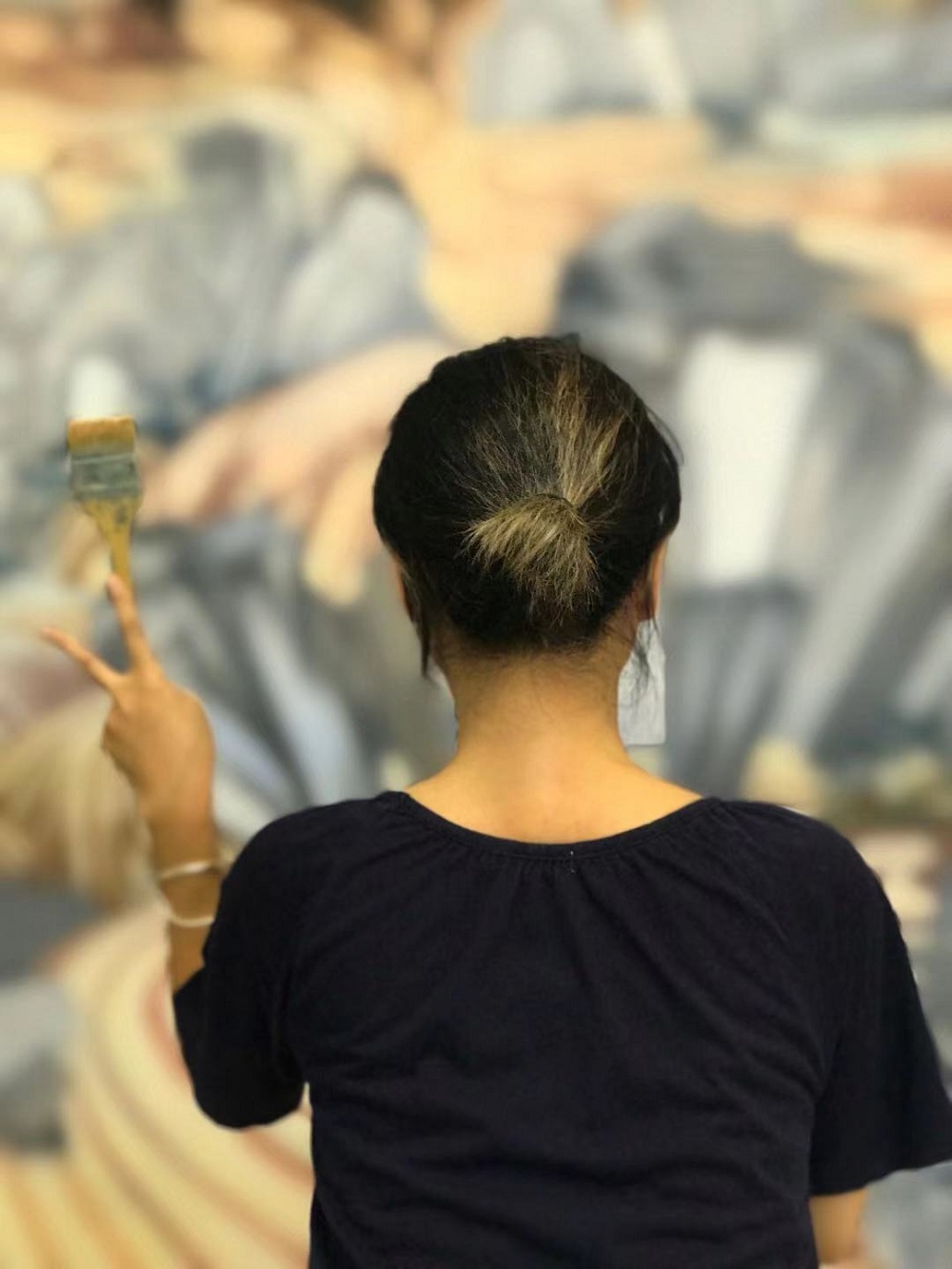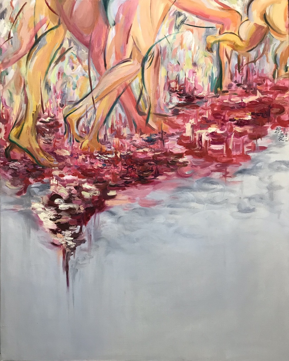 画家恩爱对远古神话有种奇特感受,为其神秘而被深深吸引,热情又混沌,朝气、淳朴、挣扎,寻知等一切感受,是她想通过画面传达出的信息,是她对于远古神话的想象。